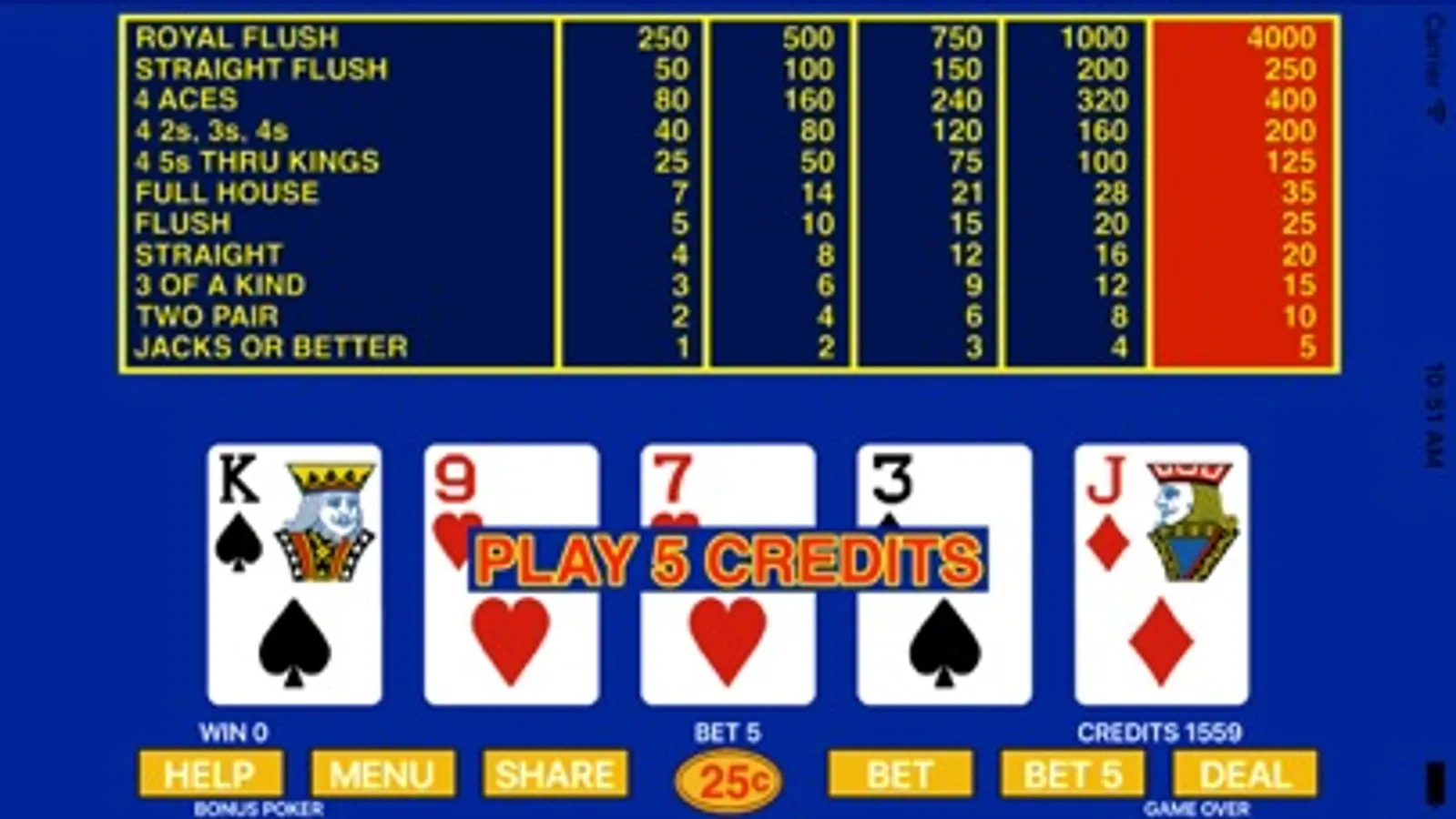 Play Bonus Video Poker casino style and become the top player in the world! Hit the jackpot with your favorite video poker game! Collect bonuses daily!
