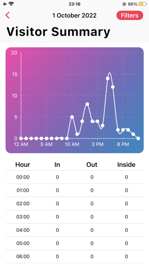 A mobile application reports people counting data for users who use Intensive Watch People Counting solution. This application makes it easy to understand how many people are in an area at anytime where the internet connectivity is available.