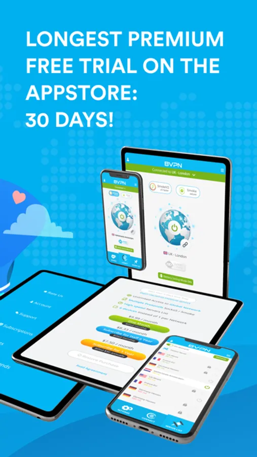 We believe in our VPN service so much that we are offering a 1 month free trial for all new users. That's right, you can try our premium VPN service for a full month without paying a dime.