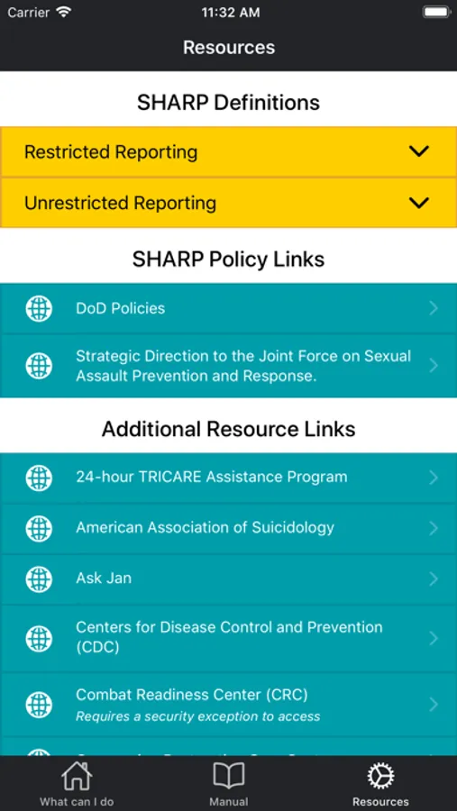 This app is to support the TRADOC Sexual Harassment/Assault Response and Prevention (SHARP) campaign plan which is designed to reduce with the goal of eliminating sexual harassment and sexual assault from our ranks. This is one of many initiatives developed to ensure that every member of our TRADOC family serves in a safe environment, free from sexual harassment and sexual assault.