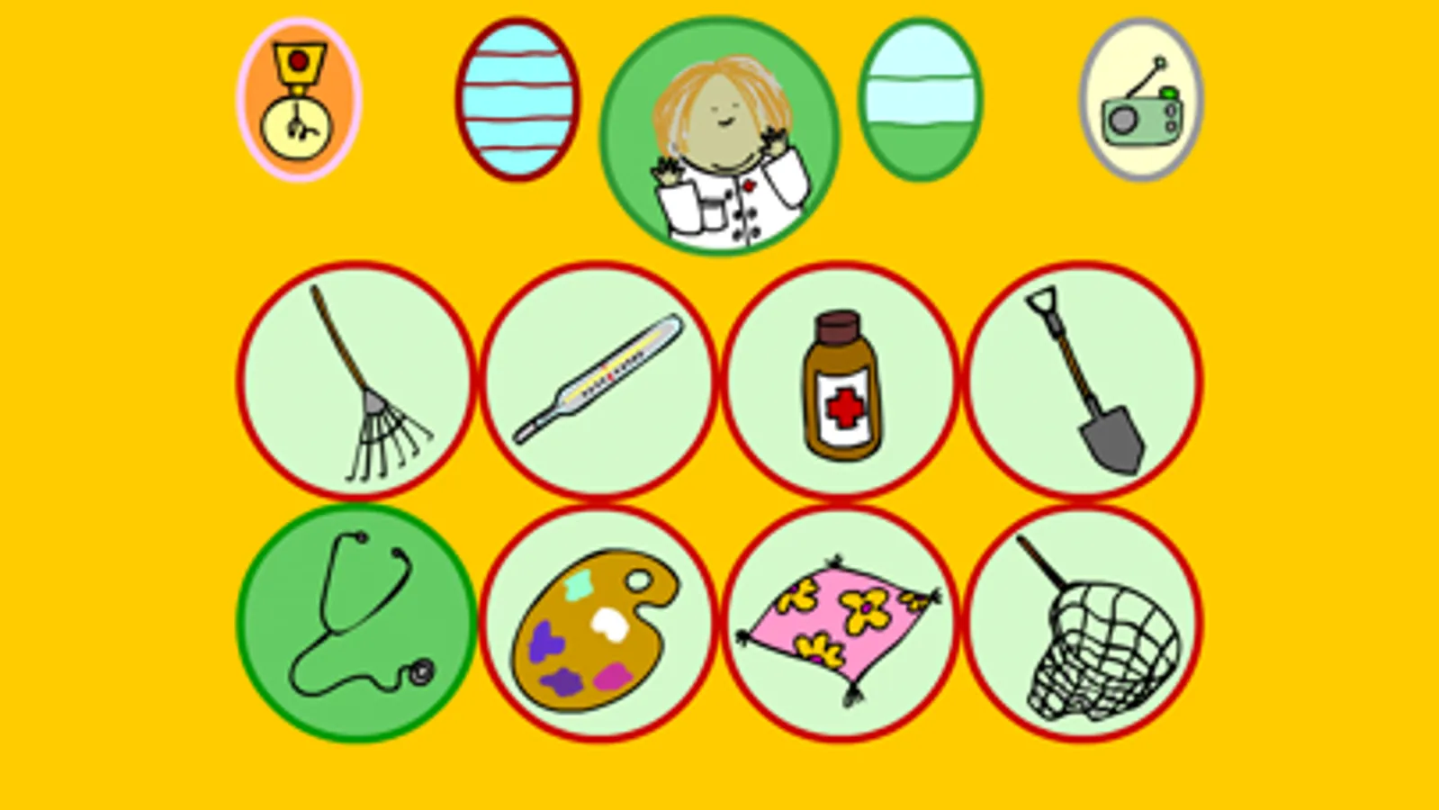 Professionals need their tools. Do you know what belongs to who? 9 mini matching games, different at each play.