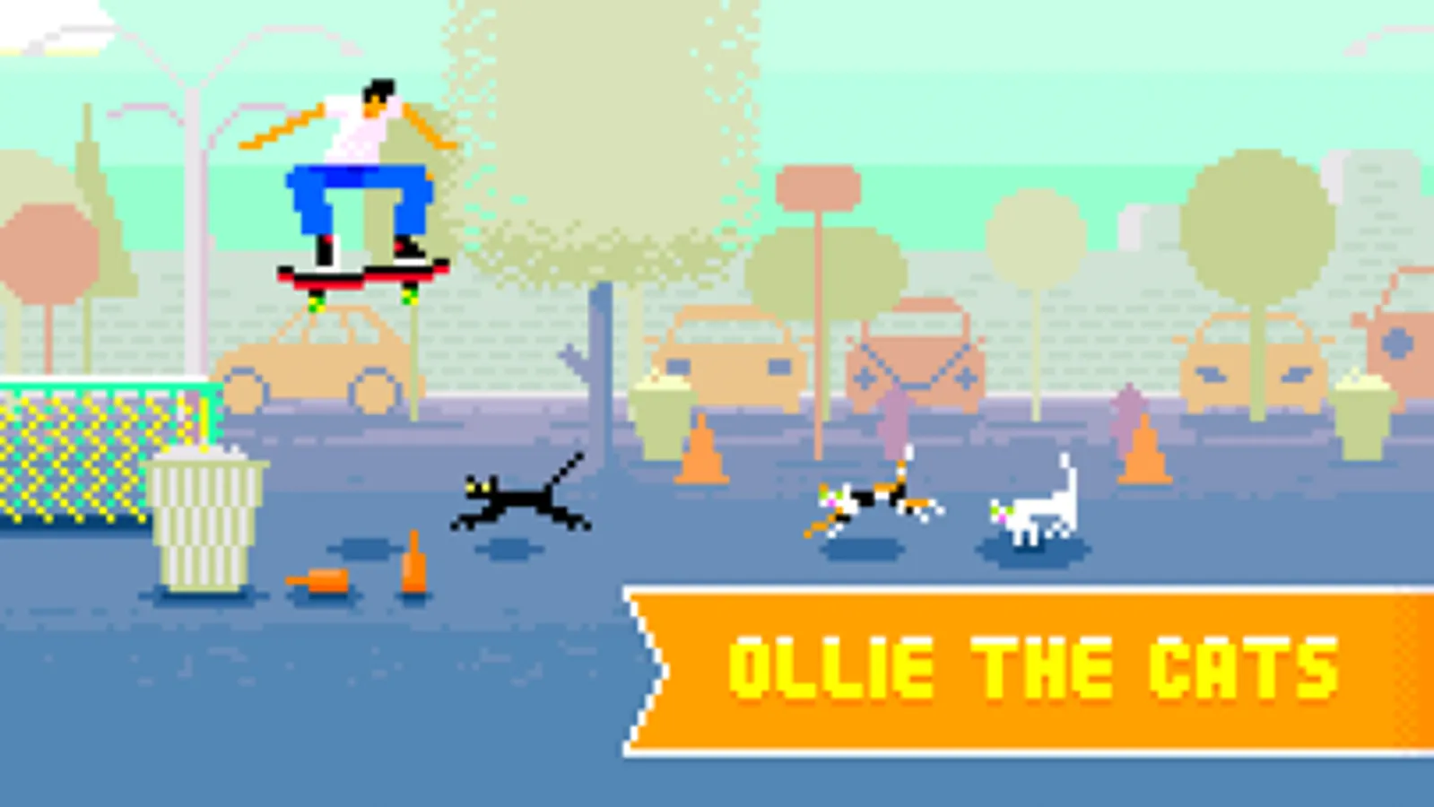 OLLIE THE CATS, just like the title says. This fun and easy to play skateboarding game positions you and your board against an endless stream of pesky cats! Swipe anywhere on screen to perform a variation of skateboard maneuvers, including flip tricks and grinds.