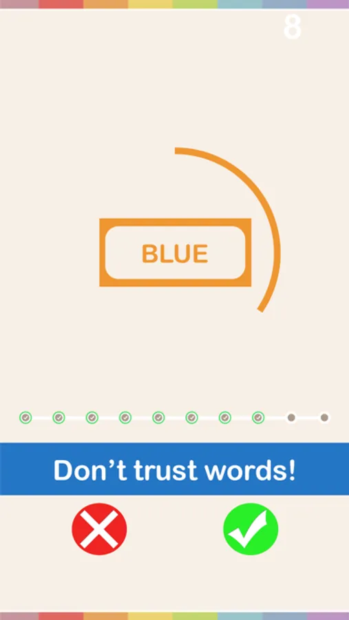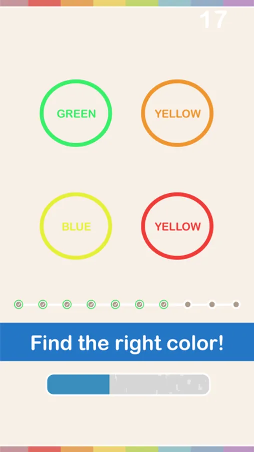 In Right Color Hit, all you need is to check if the name of the color written matches with the color displayed.