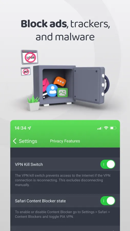 - Kill Switch: Unexpected VPN network connection failure? Our kill switch feature will automatically block your internet connection preventing any data leaks.