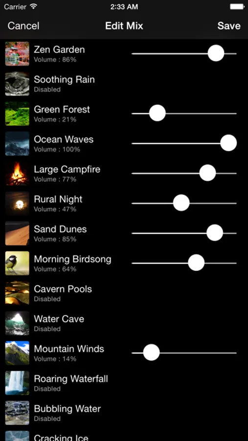 Timer - Set this to stop all sounds after a certain duration. If you plan on using Zen Song to help you sleep then it is a good idea to use the timer so it doesn’t play all night.