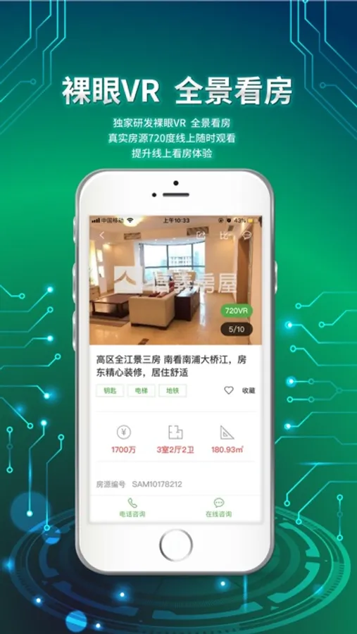 独家研发VR全景看房,真实房源线上随时看,呈现房源真实场景。