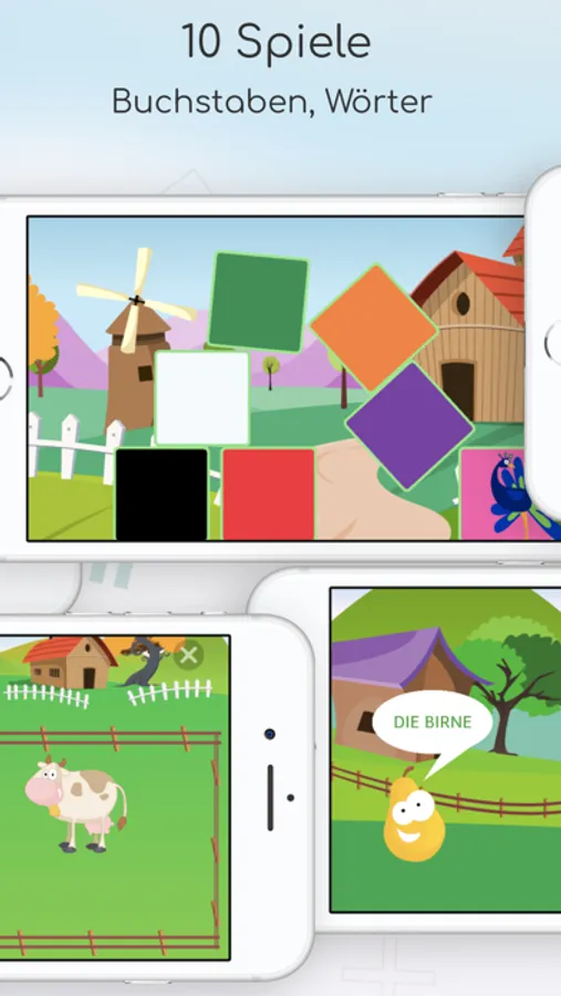 Dieses Spiel hat keine Werbungen und ist für Kinder optimiert. Lerne, teste deine Fähigkeiten und spiele mit schönen Karikaturen, Worten und Geräuschen. Die Anwendung hilft Kindern dabei das Vokabular und Wahrnehmung von Objekten und Wesen zu verbessern. Kinder werden in einer interaktiven Umgebung lernen: