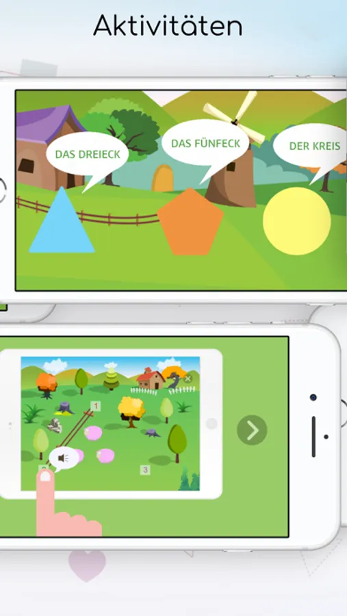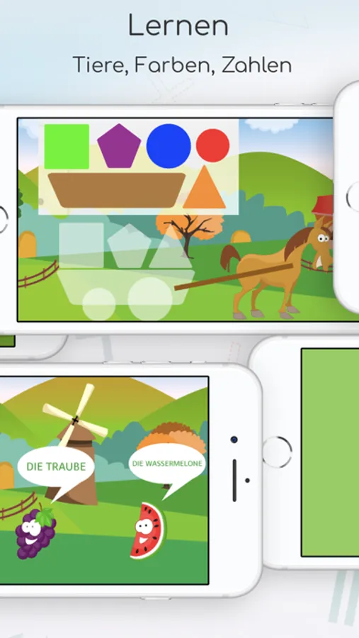 1. Lerne Tiere, Formen, Buchstaben, Zahlen, Obst und Gemüse;