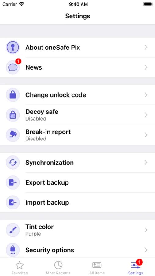 Unlike other photo security apps, oneSafe Pix is quick and easy to set up. Just choose a 4-digit PIN, password, or visual pattern. The vault automatically locks when you leave the app. And icing on the cake: you can activate Touch ID to simplify the opening of the vault!