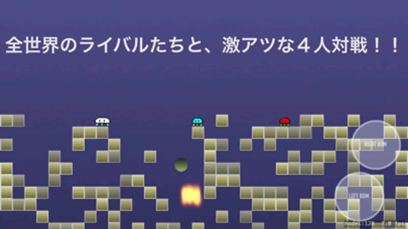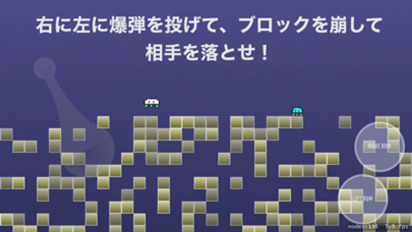 Throw a bomb on the left at LEFT BOMB on the right side of the screen. Throw a bomb on the right at RIGHT BOMB. Put the stick down and throw a bomb, you can throw a bomb a bit downwards.
