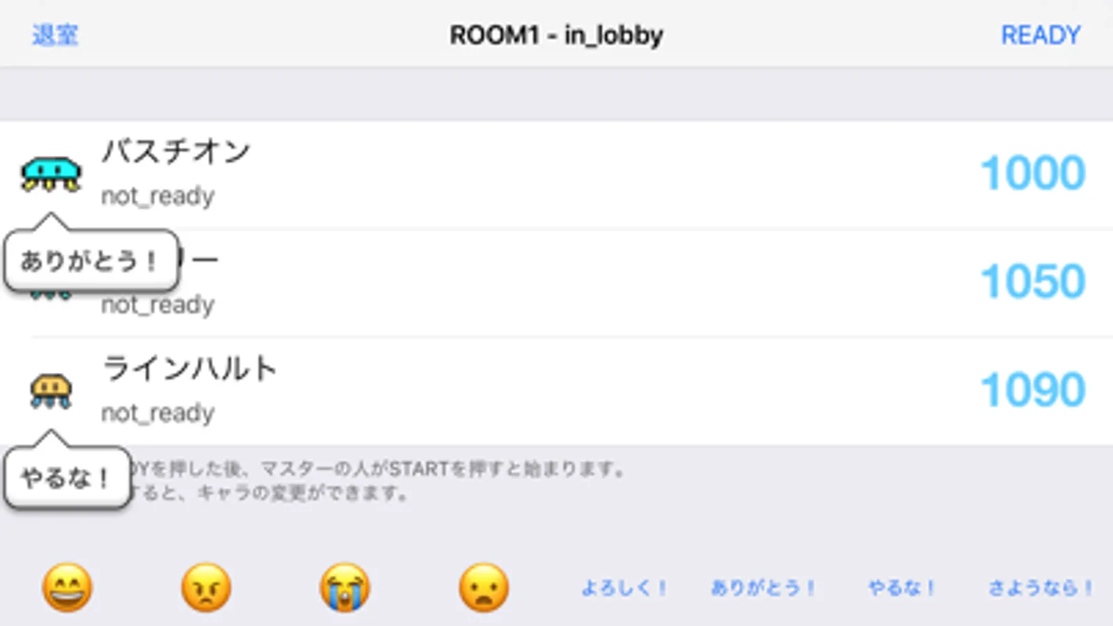 Select the room and press READY to complete the preparation.