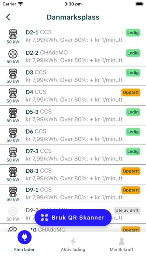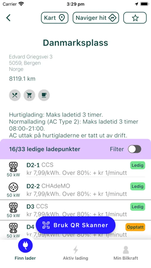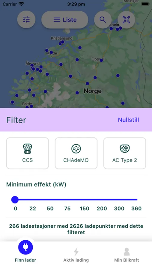 Bilkraft offers easy EV fast charging in Norway and Sweden. Bilkraft is a fast growing charging network with charging stations from Eviny, Lyse Energi and Bergen Kommune, with power from 7.4 kW to 360 kW.