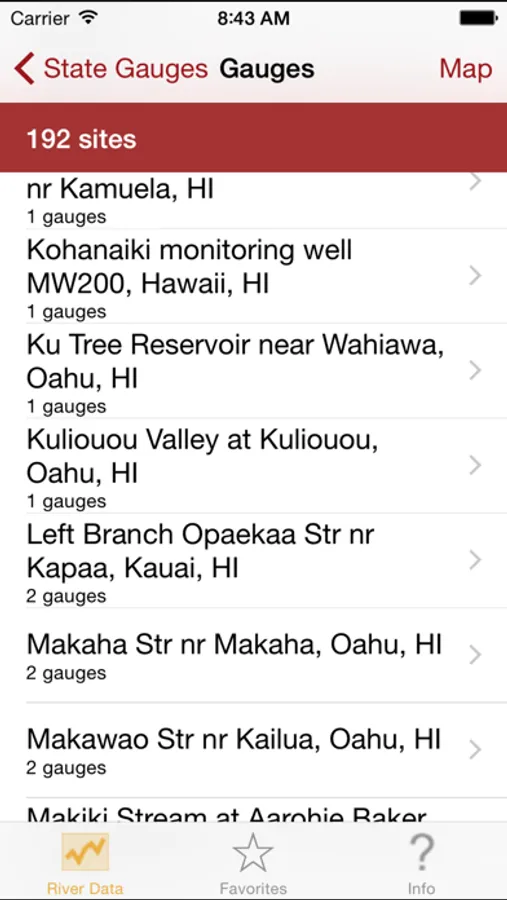 NOTE: Rivers sites and gauges are not provided by the app developer. Sorry, we are unable to help with requests to add gauges on rivers or measurement sensors on specific sites.