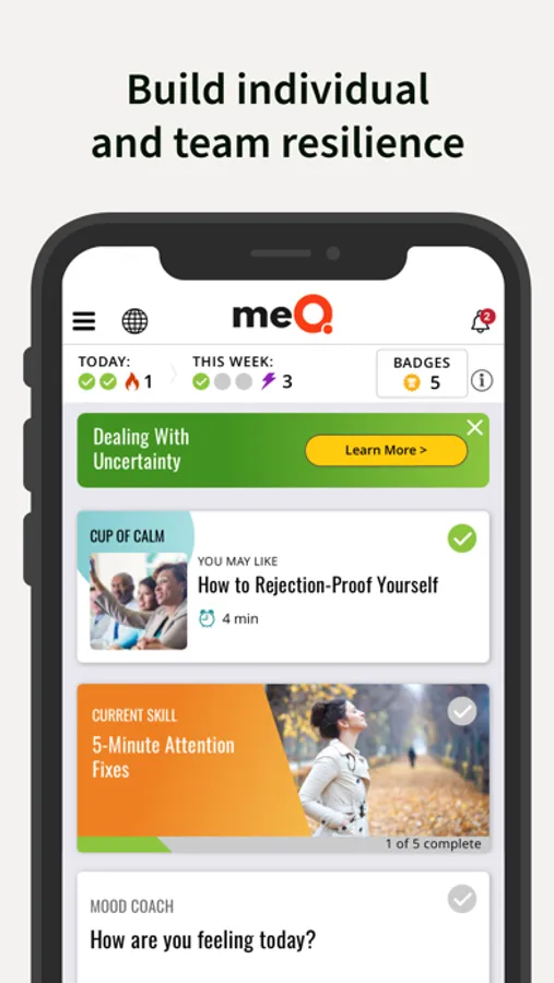 Go from coping to thriving—and beat the negative effects of stress. meQuilibrium brings you proven tools and techniques to build resilience and take control of your emotional and physical well-being.