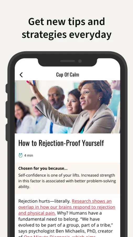 Developed by leading scientists and experts in the field of resilience, positive psychology, mindfulness, and integrative medicine, meQuilibrium will help you reduce stress, overcome negative thinking, and build greater resilience.