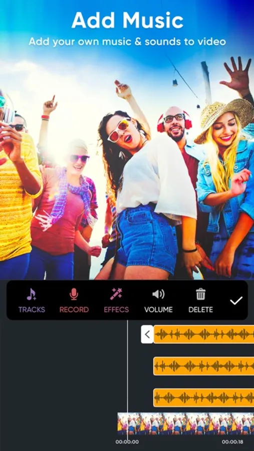 3. To add music to your trimmed video just click on Music button and select any audio from your device to add to your trimmed video.