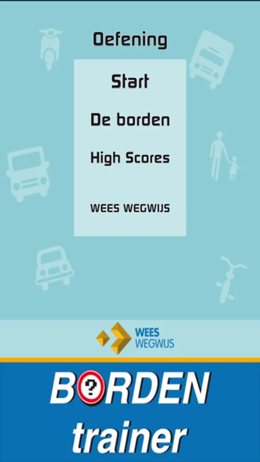 De Wees Wegwijs Bordentrainer is een spel waarmee je op een leuke manier jouw kennis test van de verkeersborden. Beantwoord zoveel mogelijk vragen zo snel mogelijk goed. Hoe beter je bordenkennis en reactietijd, hoe meer punten je haalt. De app onthoudt de 5 hoogste scores die jij gehaald hebt. Je kunt je score delen met je vrienden op Facebook of via Twitter.