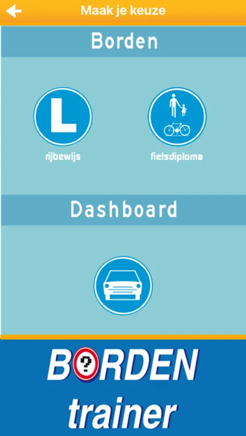 Je kan kiezen of je de bordenkennis test op rijbewijsniveau of op het niveau fietsdiploma.