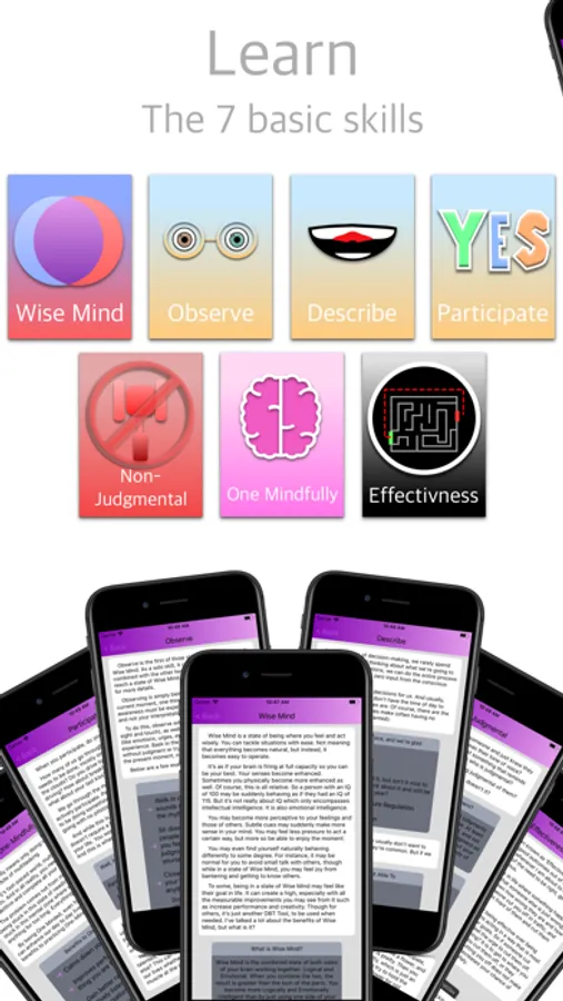 Like all our 'Tools' apps, we'll start you off with a description of what DBT is. While DBT is a set of skills, there is also a sort of culture around it. And a way of teaching/learning it. Getting an overview of what DBT is, you can more easily see where the skills fit in, and where you can most effectively integrate them into your day-to-day.