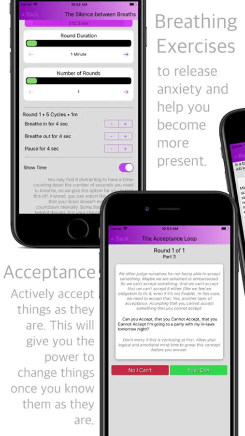 * Note that this app can integrate with the Health App by adding 'Mindful Minutes' by completing 'Silence Between Breaths' entries. This is optional and giving permission will not affect your ability to use this app.