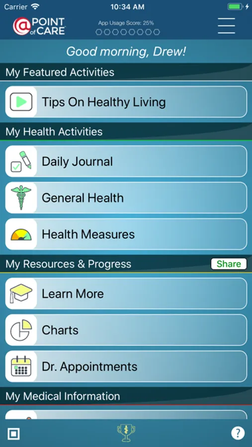 Our @Point of Care platform is an award-winning digital technology. It provides mobile, desktop, digital clinical answers at the point of care through Projects In Knowledge™. To be able to connect with you and share your HIPAA-protected information, tell your care provider to download our @Point of Care Suite App or register online at www.atpointofcare.com.