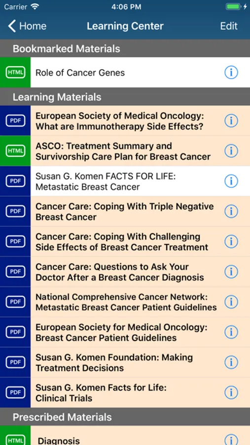 • Stay up-to-date with the latest information on Breast Cancer when you access the “Learn More” section