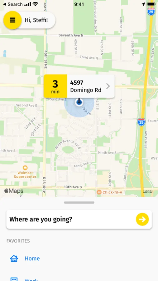 • Enter your destination address (this allows us to provide an estimated fare amount)