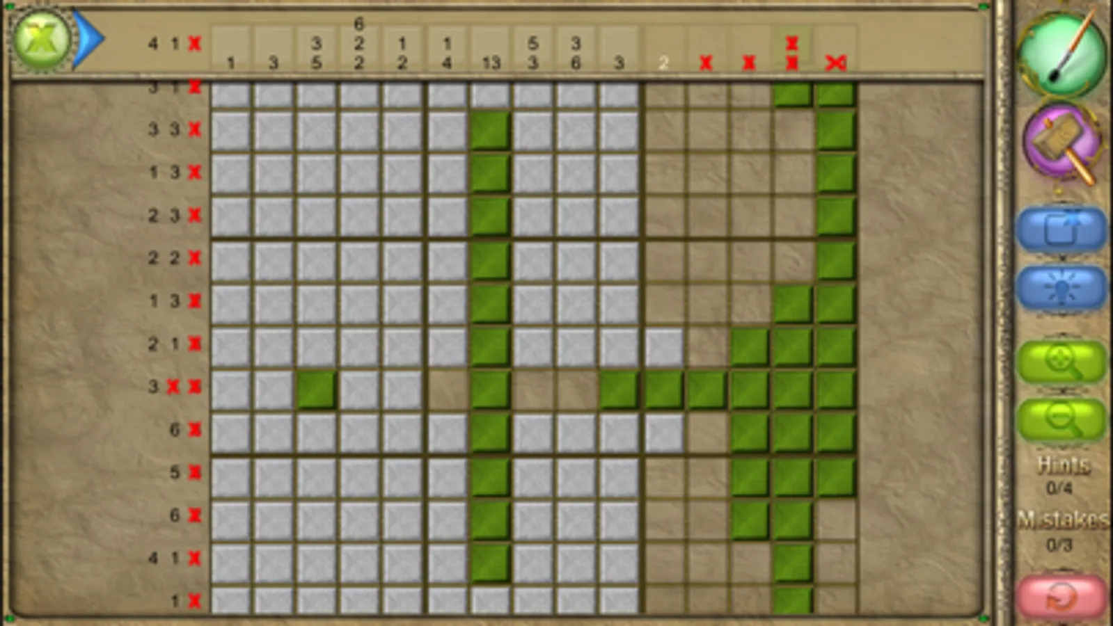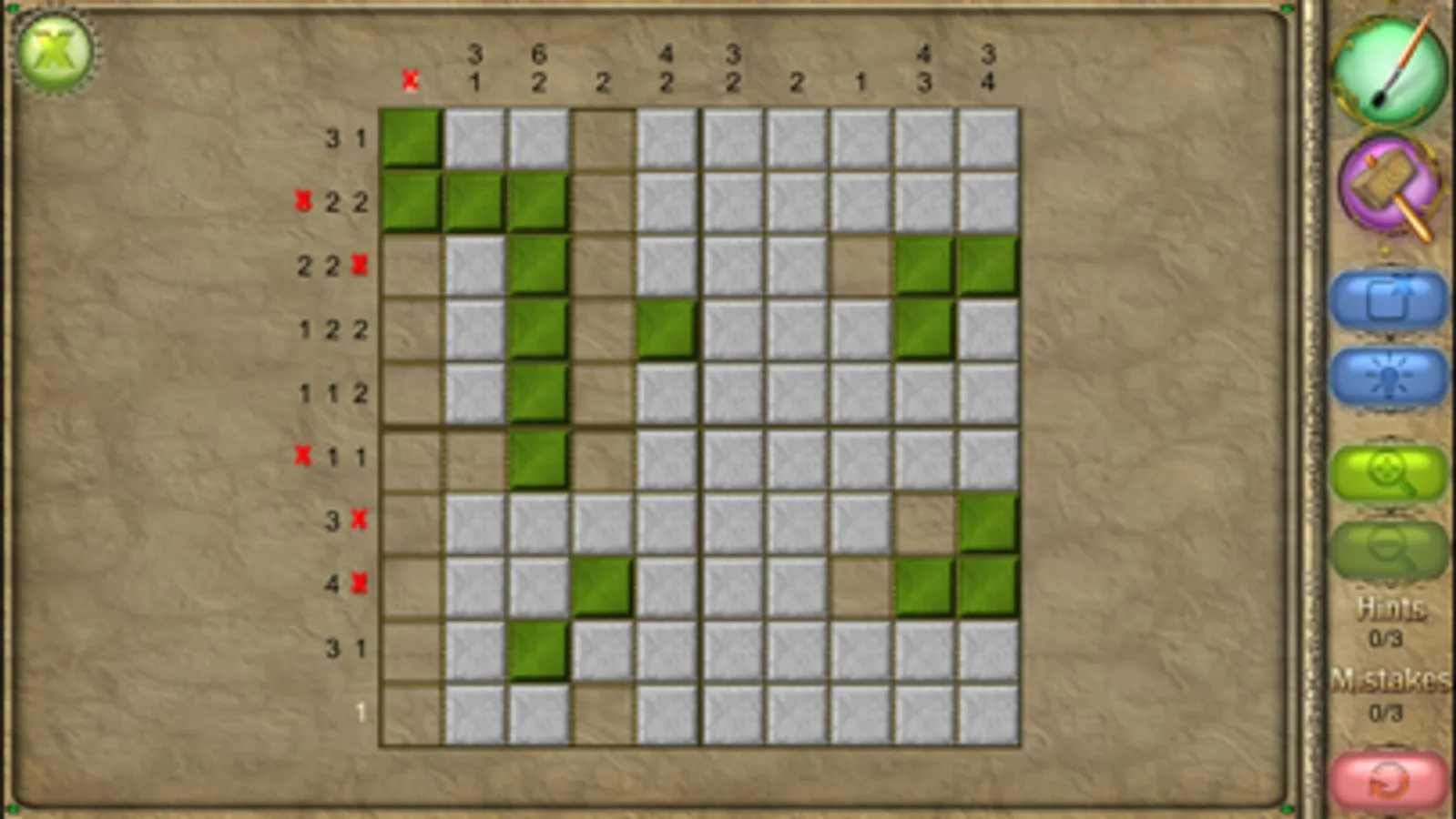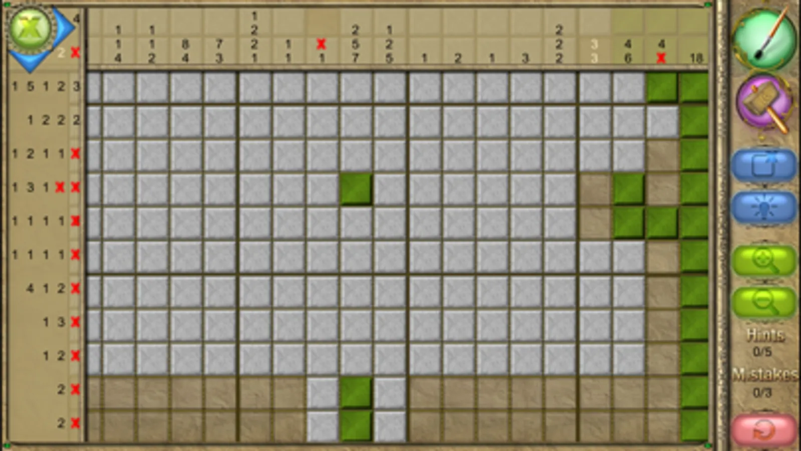 An old Japanese logic puzzle takes on a new look with FlipPix Jigsaw! Touch tiles to paint them or break them to form colorful images. The goal is to use logic to determine which tiles should be filled to reveal a hidden picture.