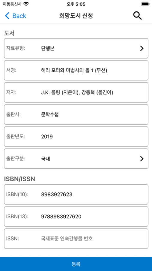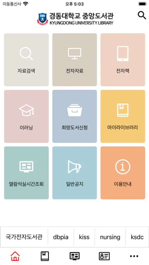 경동대학교 도서관의 도서 정보 조회 및 대출정보, 희망도서를 신청 할 수 있는 아이폰용 모바일 어플리케이션 입니다.