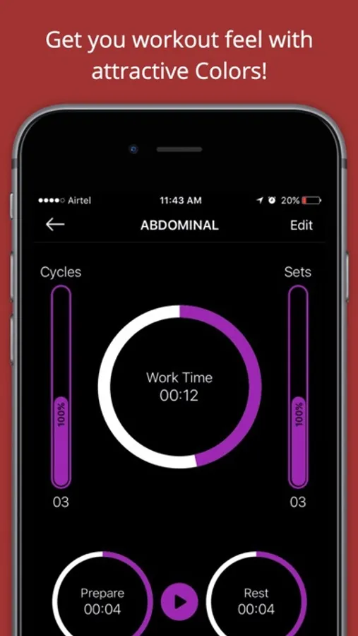 Workout Timer App is for you to stay fit & Healthy! Create your workout intervals (warm-up, workout, rest periods) and construct unique workouts with different combinations of your personalized intervals!