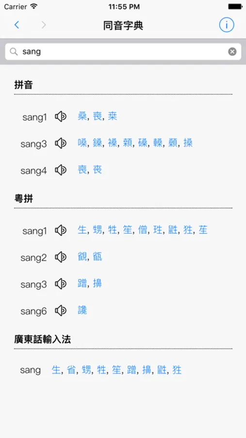 - 顯示其拼音、粵拼、倉頡、廣東話輸入法