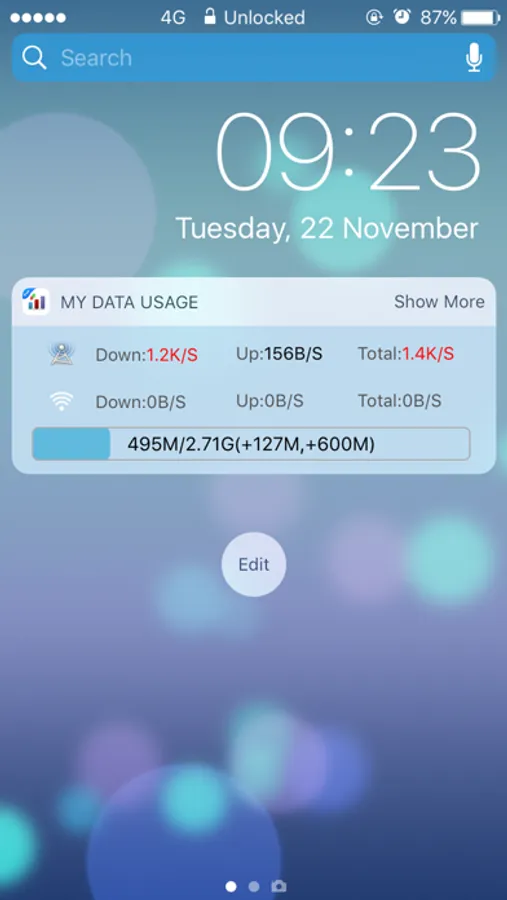 In the Notification Center, So easy to Check out real time up/down/total data from your device.