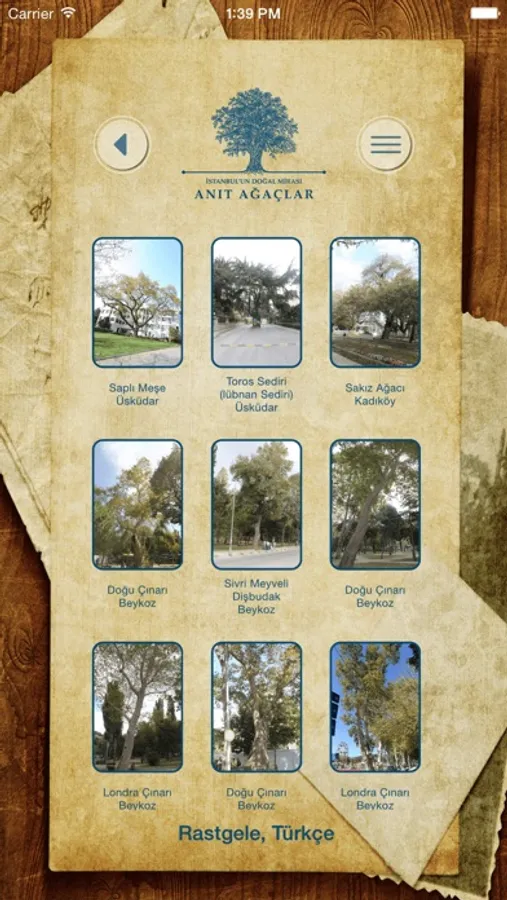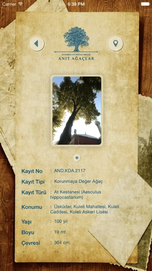 İstanbul Büyükşehir Belediyesi, Park Bahçe ve Yeşil Alanlar Daire Başkanlığı, Anadolu Yakası Park ve Bahçeler Müdürlüğü tarafından halkımızın hizmetine sunulan Anadolu Yakası Anıt ve Korunmaya Değer Ağaçlar Veritabanı uygulaması...
