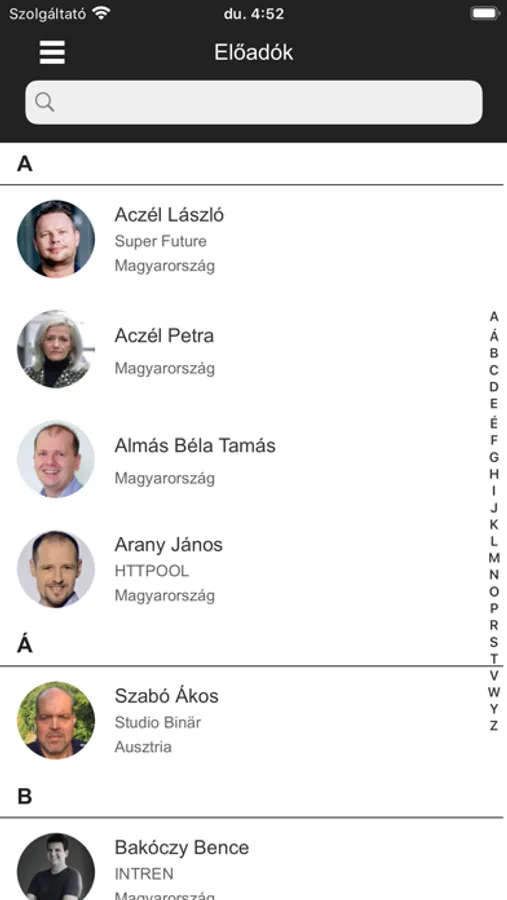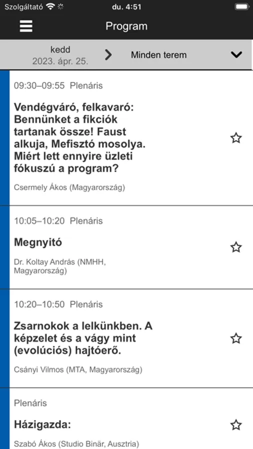 Az alkalmazás működéséhez Internet kapcsolat szükséges, mivel a program változása így nyomon követhető (pl. előadások csúszása technikai okok miatt). Ne törölje le mobiljáról az appot, mert automatikusan frissül a program a következő években is.