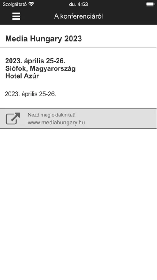 A hivatalos Media Hungary app használatával a konferencia teljes programját böngészheti. Ha az egyes előadásokat, fórumokat kedvencnek jelöli, az alkalmazás azok kezdése előtt értesítést küld. A konferencia összes előadójáról rövid jellemzést is olvashat.