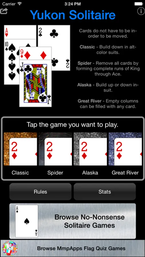 Yukon Classic and Yukon Spider with the MmpApps no-nonsense card game interface. Totally free. No in-app purchases.