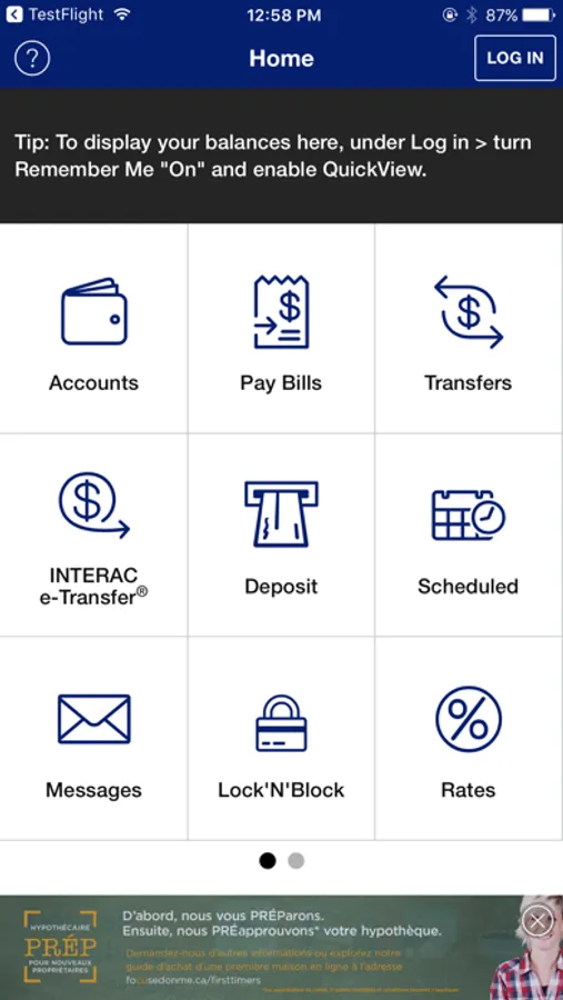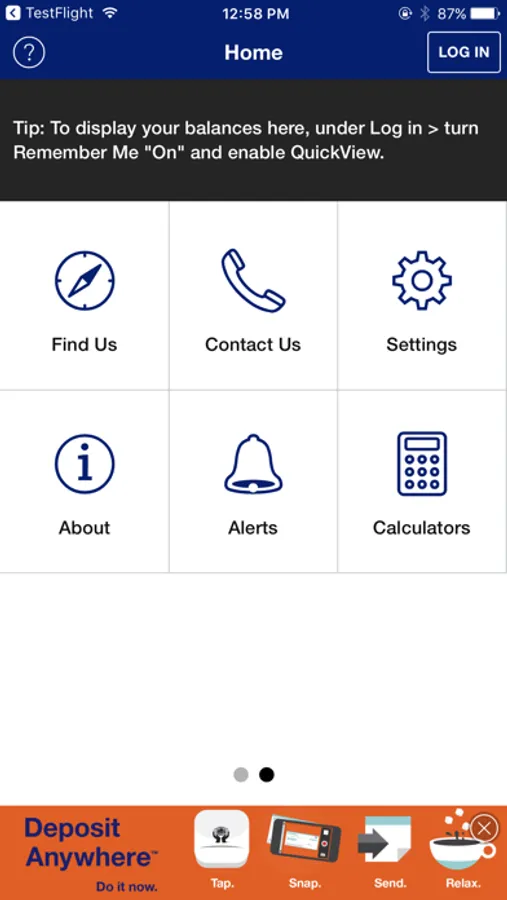 To take advantage of the full functionality of this app, you must already be registered and have logged in to online banking. If you are not an online banking member, you can still use the Branch/ATM locator, Rates and our Contact Us information.