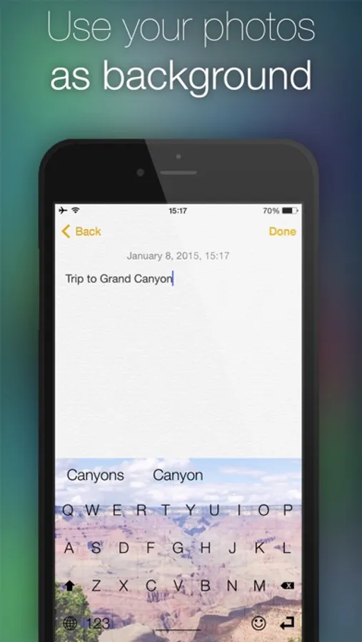 - Custom background! Add a background image to Photo Keyboard. Try it! It will look great!