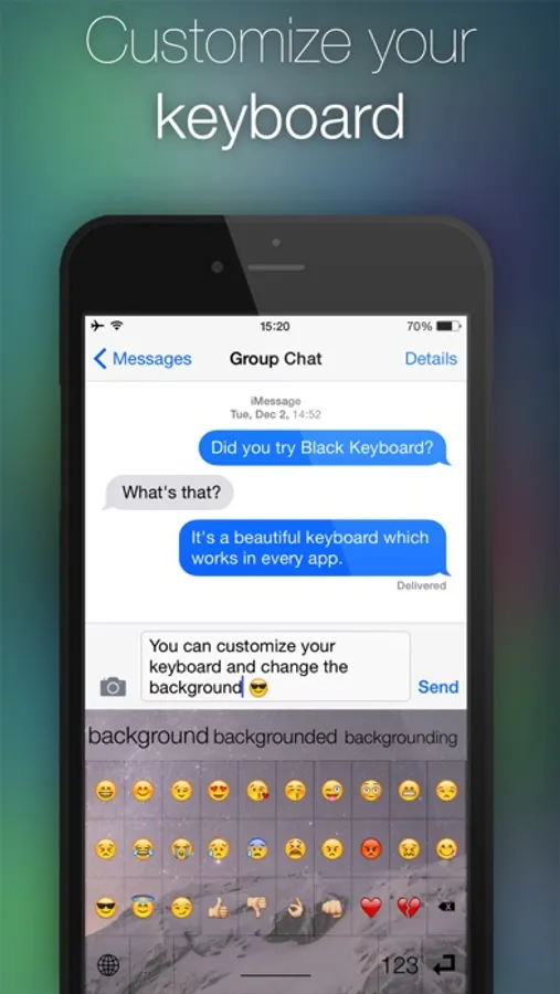 Choose a custom background image and customize your keyboard with your loved ones, family, friends or everything else you can think of!