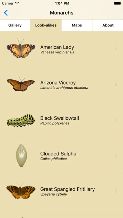 If viceroy and queen butterflies confuse you, quickly learn the differences in the "Compare" section under each butterfly. Keep up with the latest information on monarch conservation efforts and migration news by checking in daily with What's New? The feed is updated every time you open the app, so you'll always be in the loop!