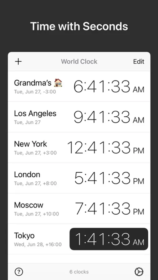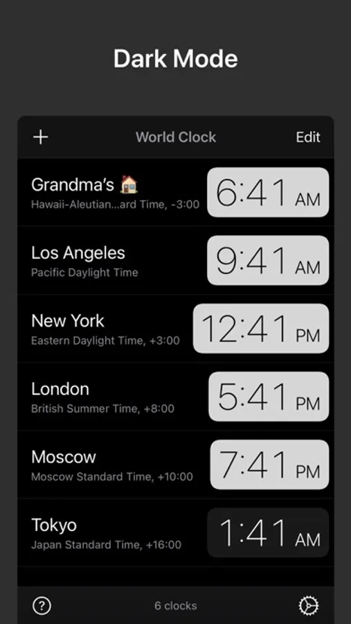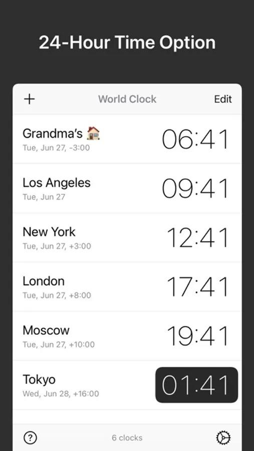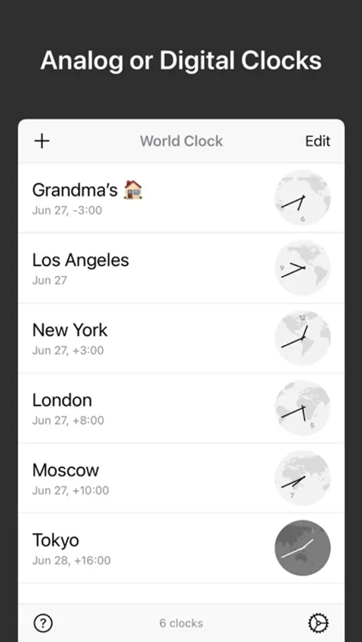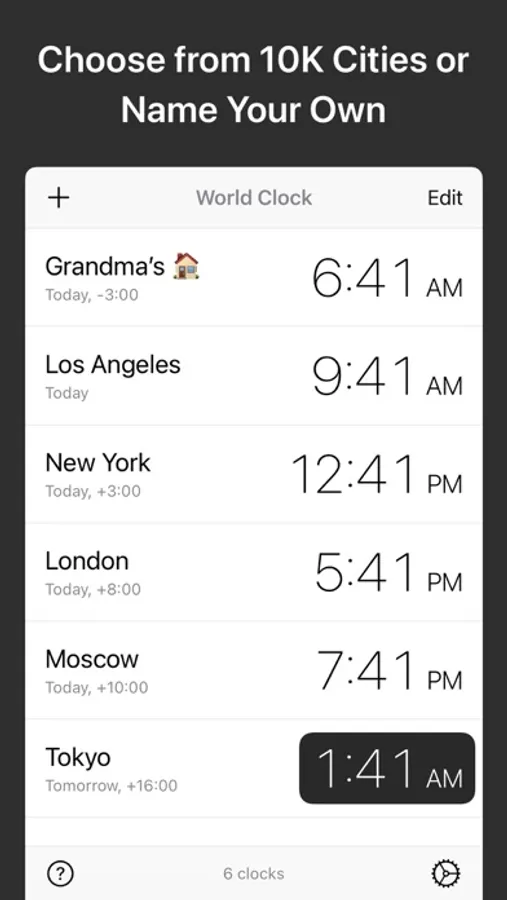 • Rename a city to create a custom clock, e.g., “Grandma’s House”.