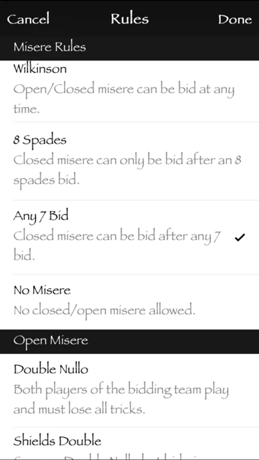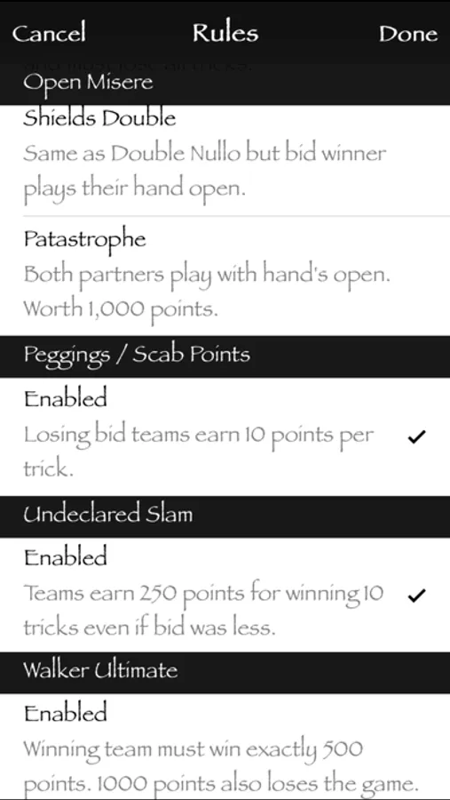 - Customise rules to allow different variations of your game as per the 500 wiki.