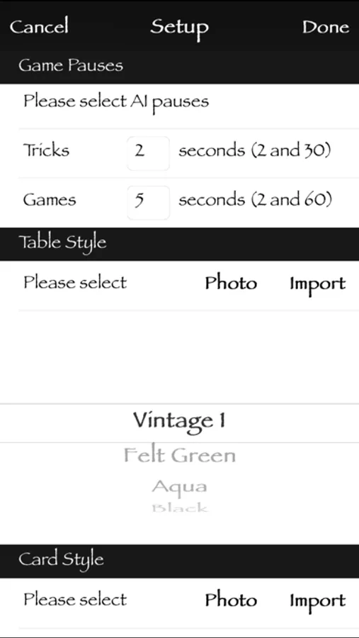 - Take photo's or use images on your device to appear as your card table or the card's themselves!