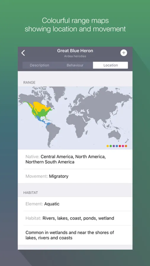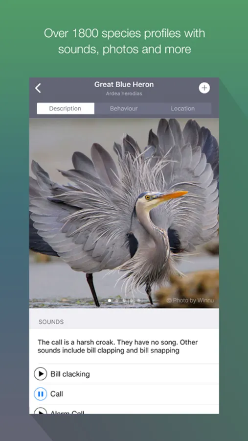 Add sightings of any of the world's 10,000 bird species. Get complete bird lists for your location with access to over 2000 scientific bird profiles, 5800 beautiful, full resolution photos and 3700 bird sounds including bird calls and bird songs.