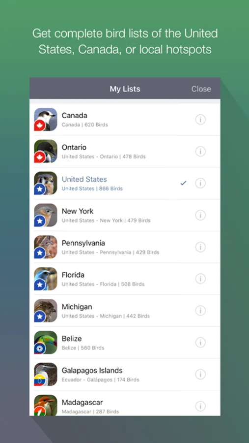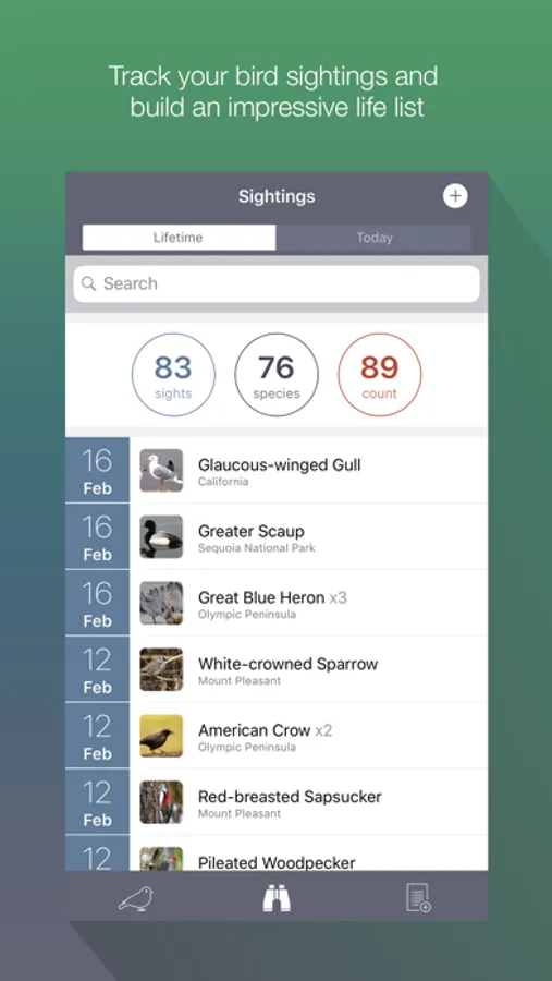 ■ Add bird sightings, completing lists, and tracking overtime in your life list
