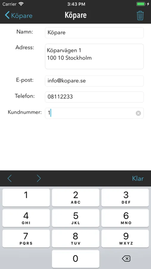 - Moms och slutsumma räknas ut automatiskt utifrån dina angivna produkter