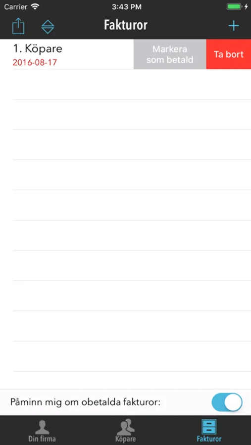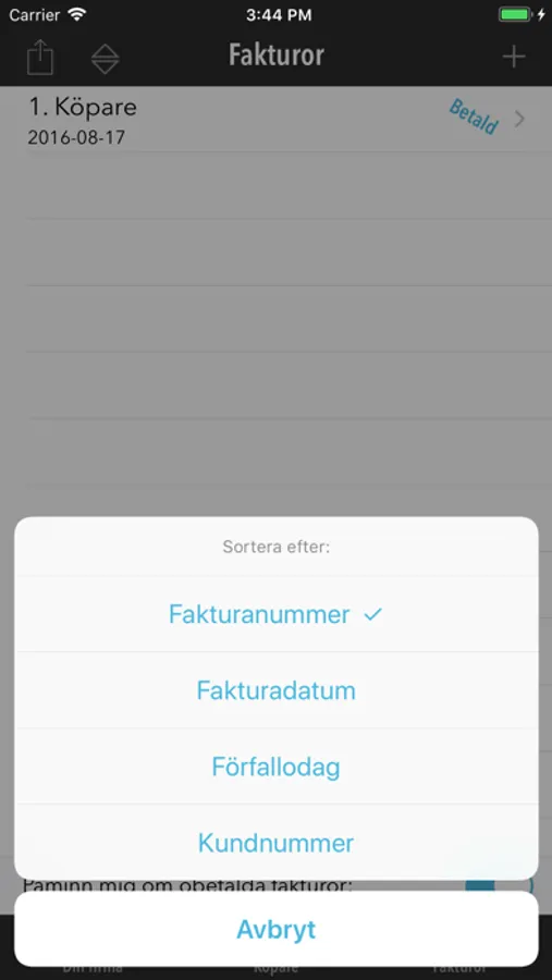 - Exportera din faktura till .pdf och öppna i andra appar (messaging-appar, cloudtjänster)