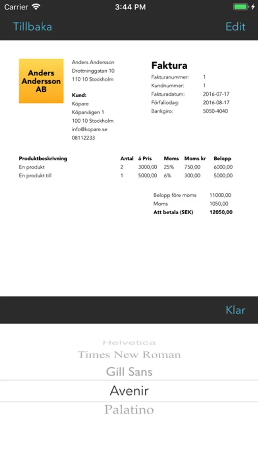 - Anpassa din faktura med egen logotyp och olika teckensnitt