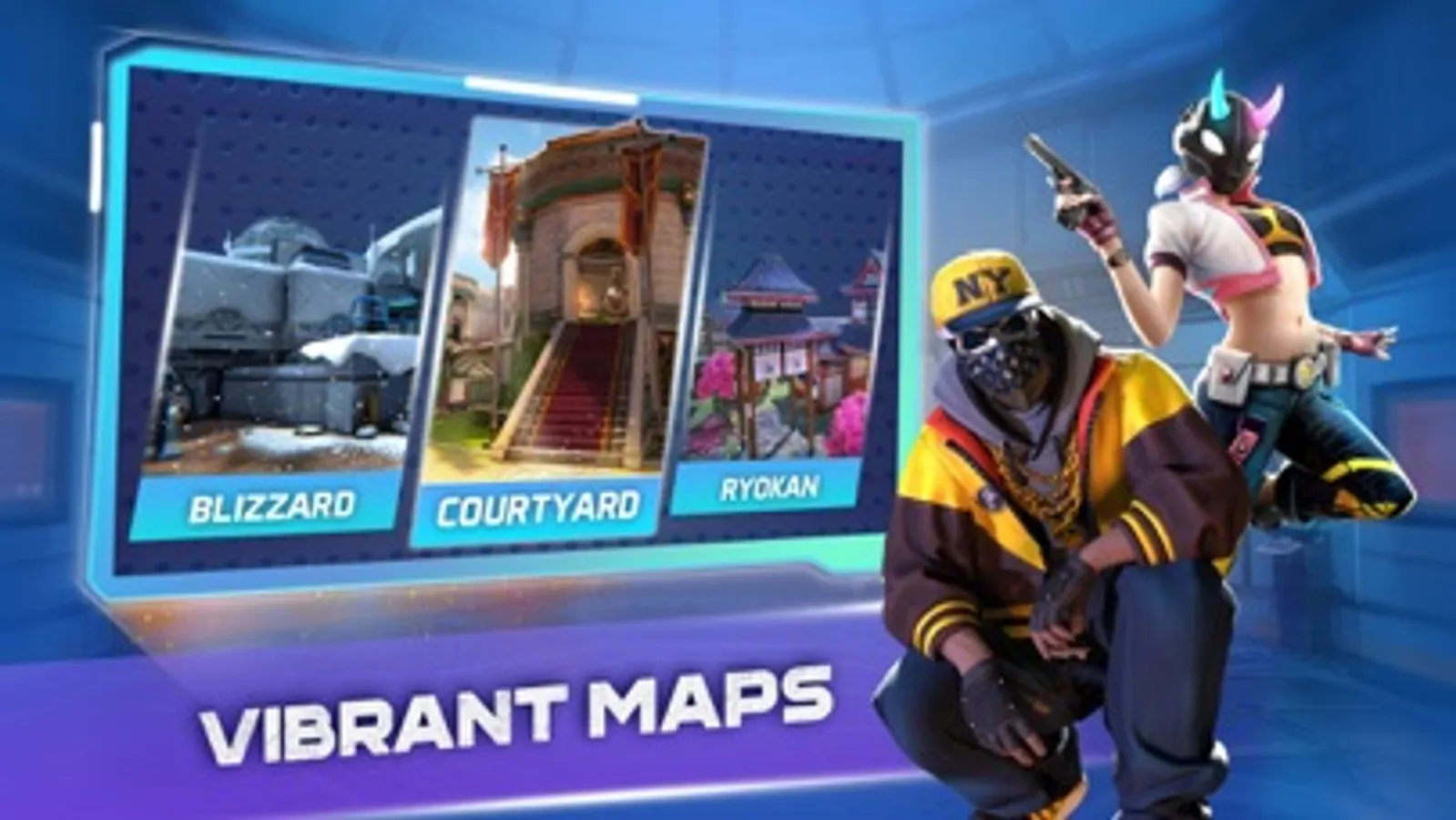 ► Nine Maps including Yard, Ryokan, Downtown, Airport, Courtyard, Mayan, Blizzard, Favela, and LightHouse