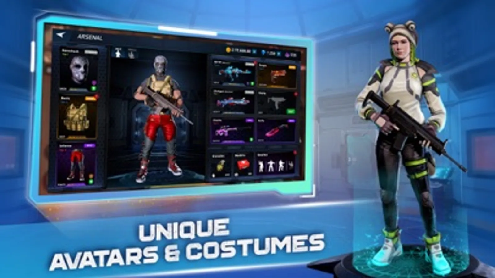 ► Player Gear Customization: Customize your shooter character using a variety of equipment, masks, armor, and gear. Choose from a variety of guns including sniper 3d, shotgun, pistol etc. Pick a character that suits your personality like gangsters, mobile legends, or fun female agents.